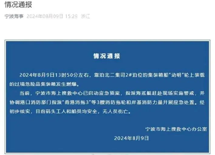 宁波市海上搜救中心办公室下午也已经发布“情况通报”。